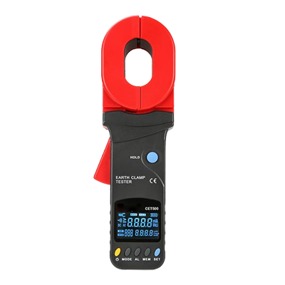 CET500 Clamp Earth Ground Tester based on the rogowski coil principle provides a quick & safe method for measuring earth ground resistance without disconnecting circuit earthing / ground lines or without stakes & wires. Simply clamp the meter around the earthing strip wire and measure within range of 0.01 to 1200 ohms.